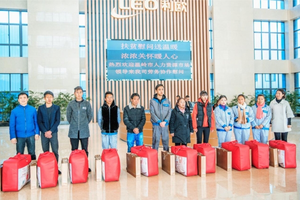 1月21日上午,溫嶺市人力資源市場主任張晞一行人走訪利歐集團(tuán),對2018年東西部扶貧協(xié)作勞務(wù)輸出的茂縣務(wù)工人員進(jìn)行春節(jié)慰問,并送上節(jié)日慰問品。